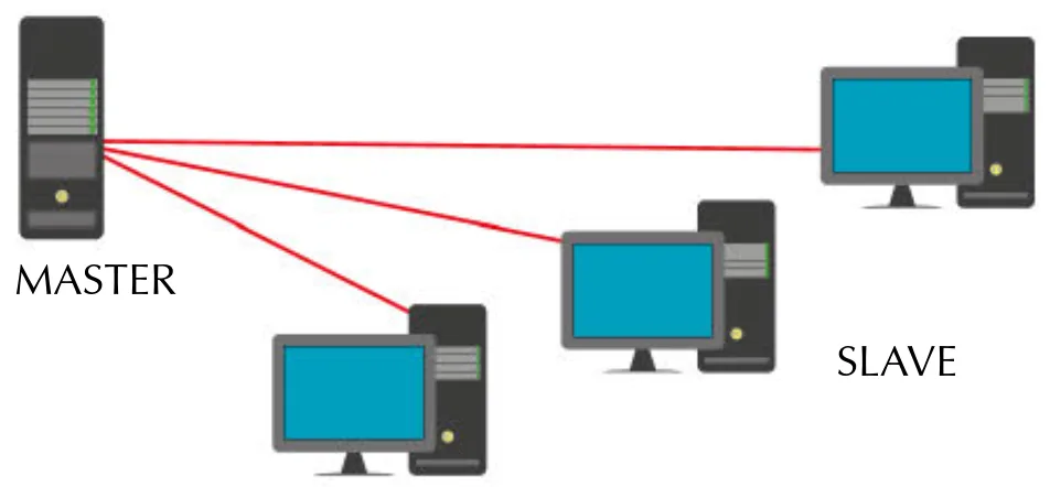 Un dispositivo centrale (master) controlla gli altri dispositivi (slave). Gli slave non comunicano tra loro, ma solo attraverso il master.
