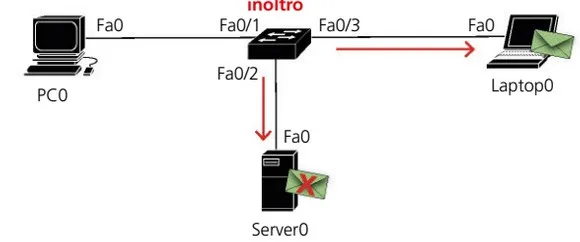 - se l’indirizzo è presente, lo switch inoltra la trama ricevuta sulla porta