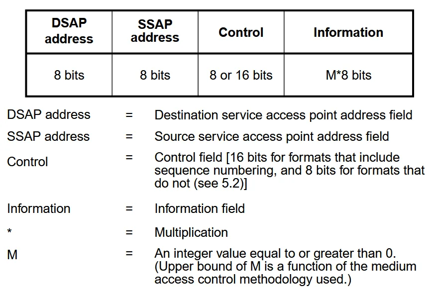 Il campo NETWORK PDU (o information) può avere 0 o più byte (non è stabilito un limite massimo, ma PDU troppo grandi potrebbero essere frammentate dal sottolivello MAC) che contengono la PDU che il livello superiore (Network Layer) si attende di ricevere dal sottolivello MAC in ricezione o invia al sottolivello MAC in trasmissione.