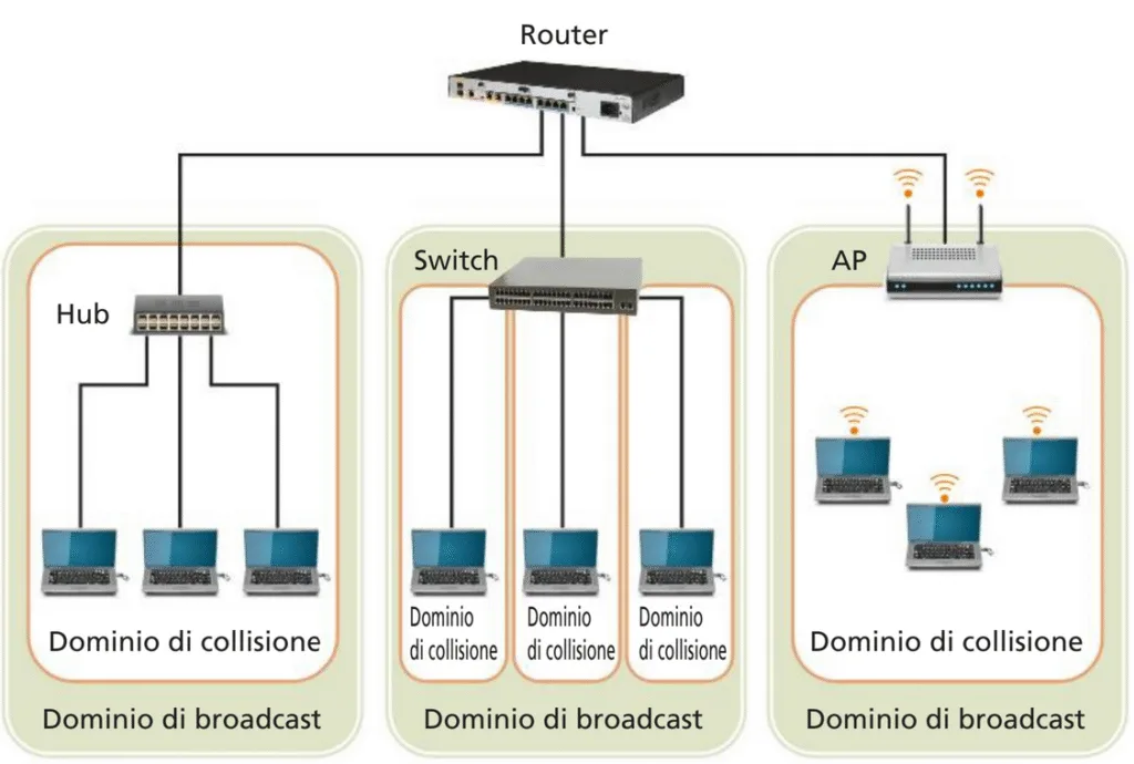 La sostituzione degli hub/repeater con gli switch ha consentito di superare il problema delle collisioni, in quanto ogni computer è collegato direttamente allo switch e non condivide il canale di trasmissione con altri computer.