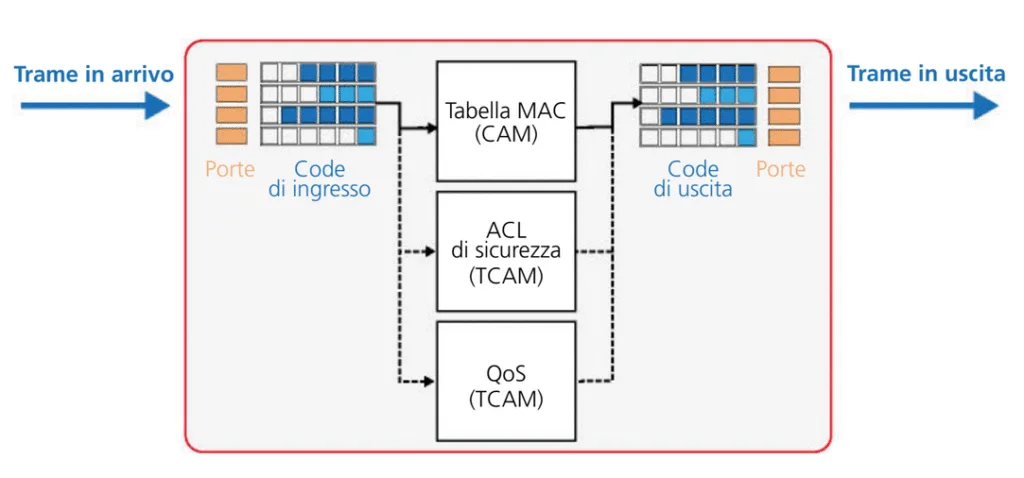 Memory), mentre le tabelle ACL e QoS sono ospitate nella memoria TCAM (Ternary