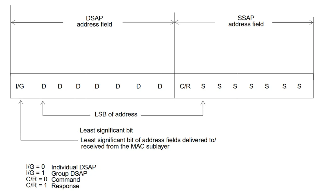Il bit meno significativo (LSB) dell’indirizzo DSAP (Destination Service Access Point) nell’LLC (Logical Link Control), fare attenzione, da specifica 802.2 il LSB è quello a sinistra, indica se l’indirizzo si riferisce a un singolo SAP (Service Access Point) o a un gruppo di SAP. Nello specifico, se il bit meno significativo è 0, si tratta di un indirizzo individuale, mentre se è 1, si tratta di un indirizzo di gruppo. Analogamente il LSB del SSAP vale 0 se si tratta di un comando mentre vale 1 se si tratta di una risposta.
