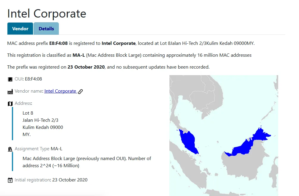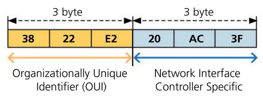 - i fornitori dei dispositivi ricevono da IEEE un codice univoco di 3 byte (6 cifre