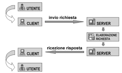 - Client: dispositivo o programma che invia richieste di servizio. Può essere un computer, uno smartphone o un browser Web.
