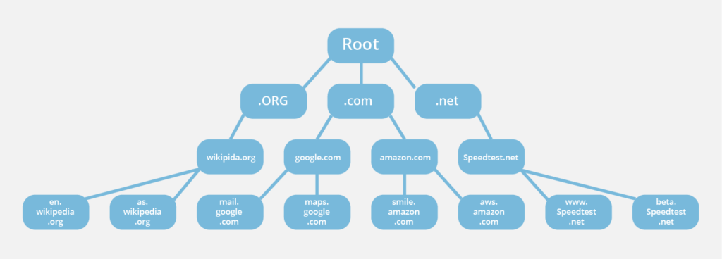 Il sistema dei nomi di dominio è organizzato secondo una struttura gerarchica ad albero, con diversi livelli:
