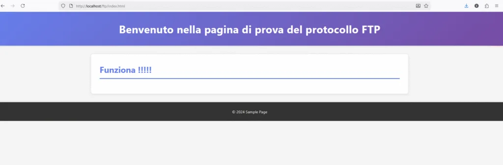 http://localhost/ftp/nomedelfile.html - Se il file appare, l’upload è stato completato correttamente