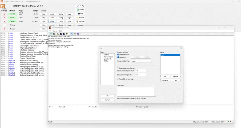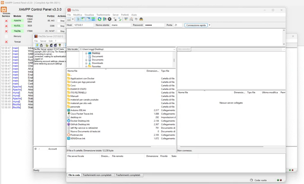 FileZilla Server + Client è ideale per test locali o reti aziendali interne