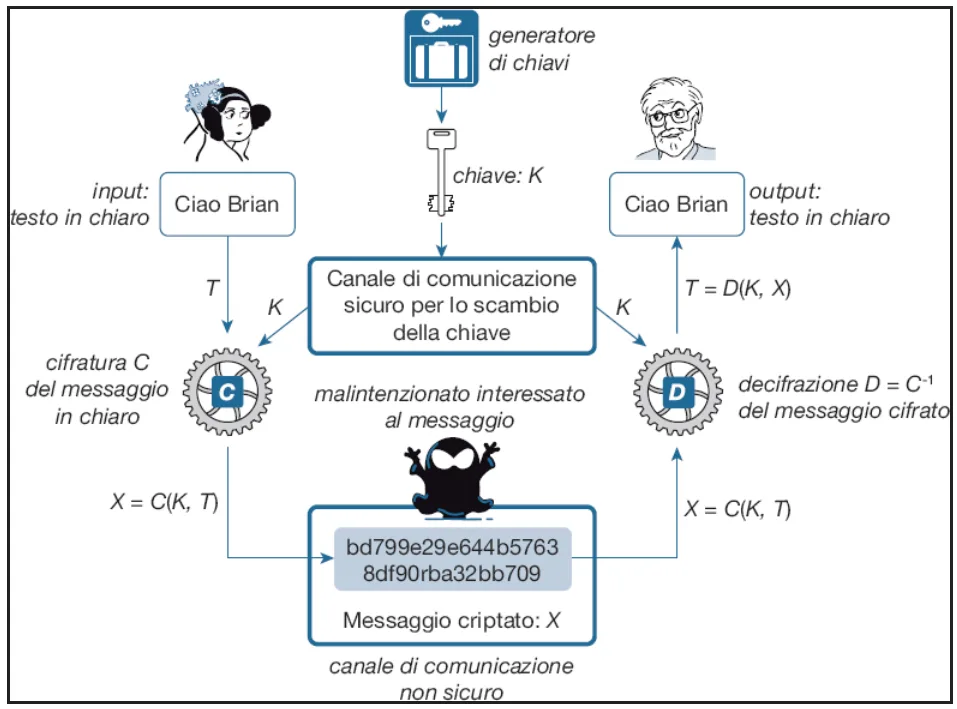La crittografia simmetrica rappresenta la forma più antica e storicamente consolidata di protezione delle informazioni. Già in epoca romana venivano utilizzate tecniche di cifratura per garantire la riservatezza delle comunicazioni militari e politiche. Lo storico Svetonio, nel Vite dei Cesari, testimonia come Giulio Cesare facesse ricorso a un semplice ma efficace metodo crittografico per trasmettere messaggi riservati.